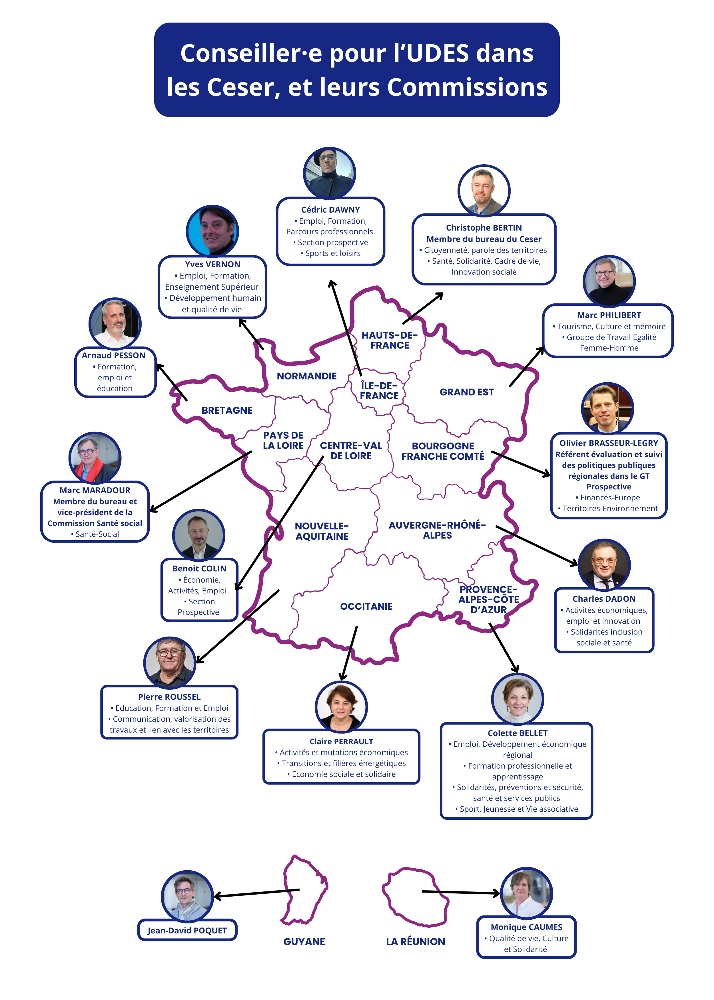 Au 1er janvier 2024, l’UDES se félicite de l’augmentation du nombre de ses conseillers dans les CESER, passant de 11 à 14 conseillers.