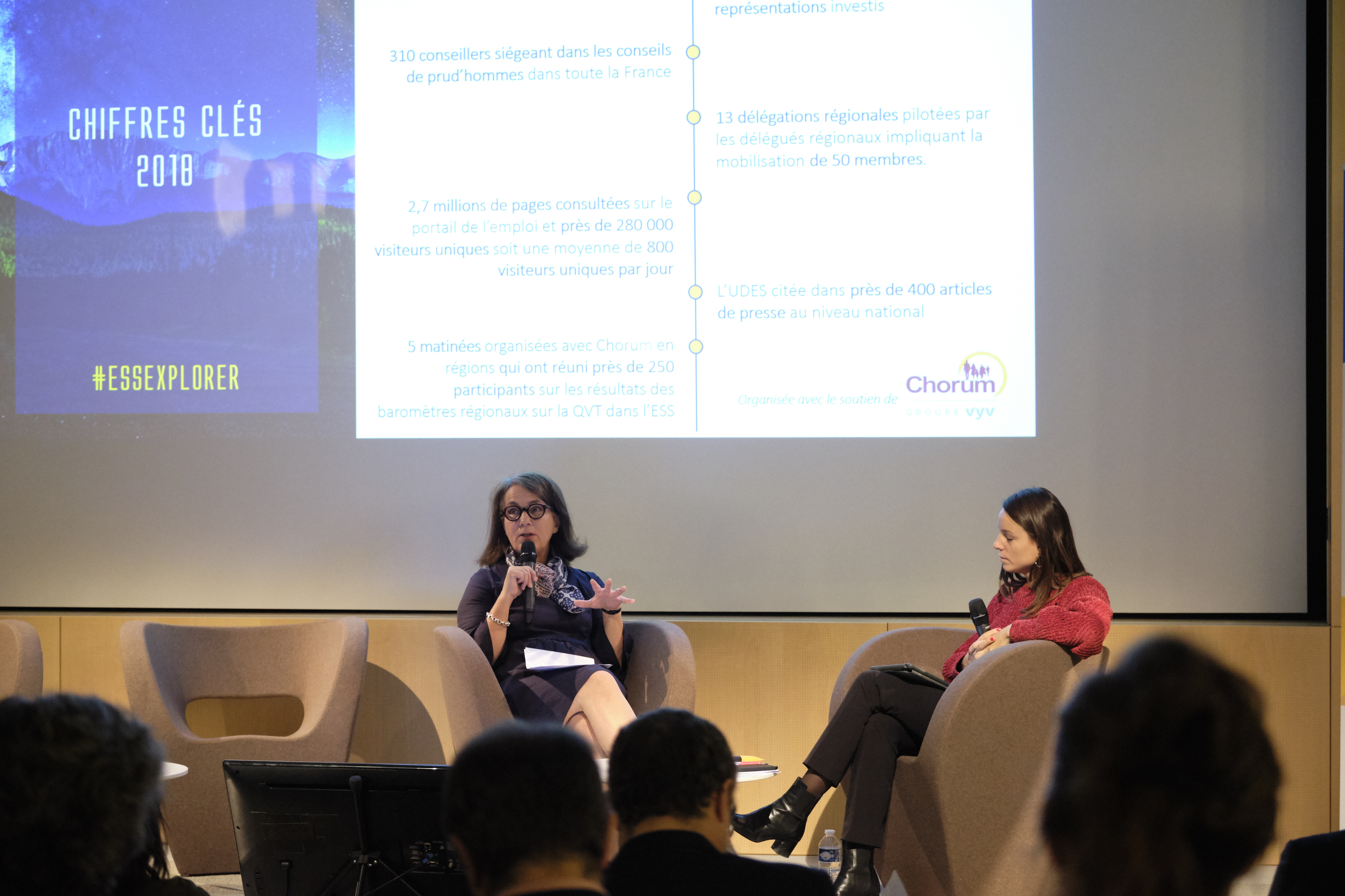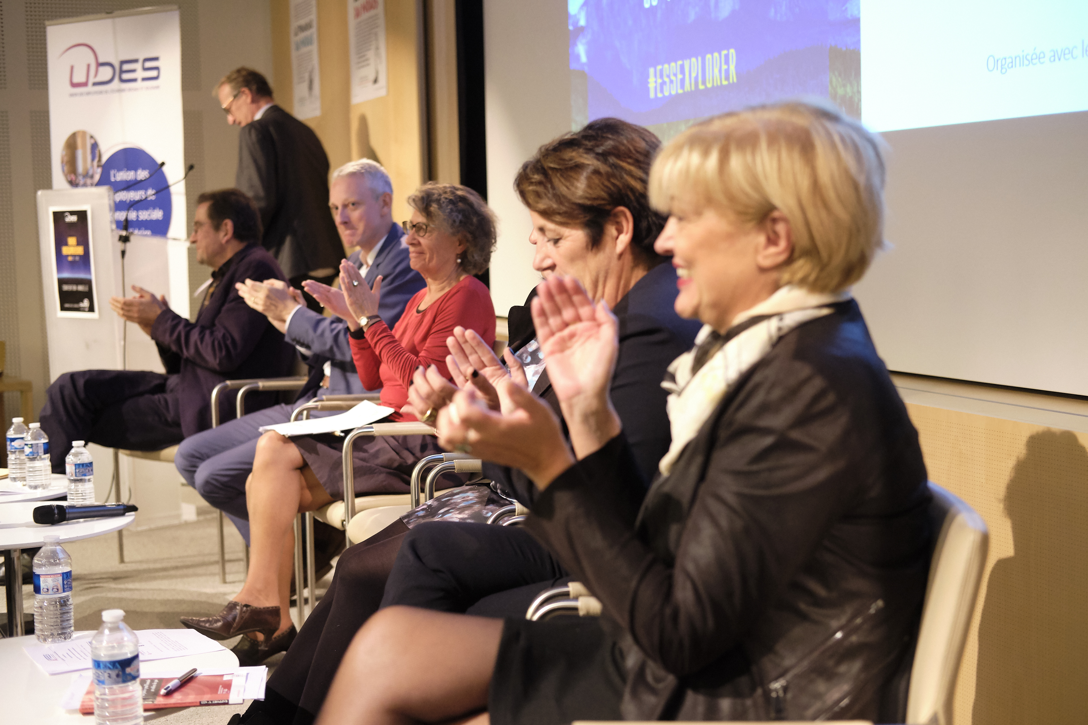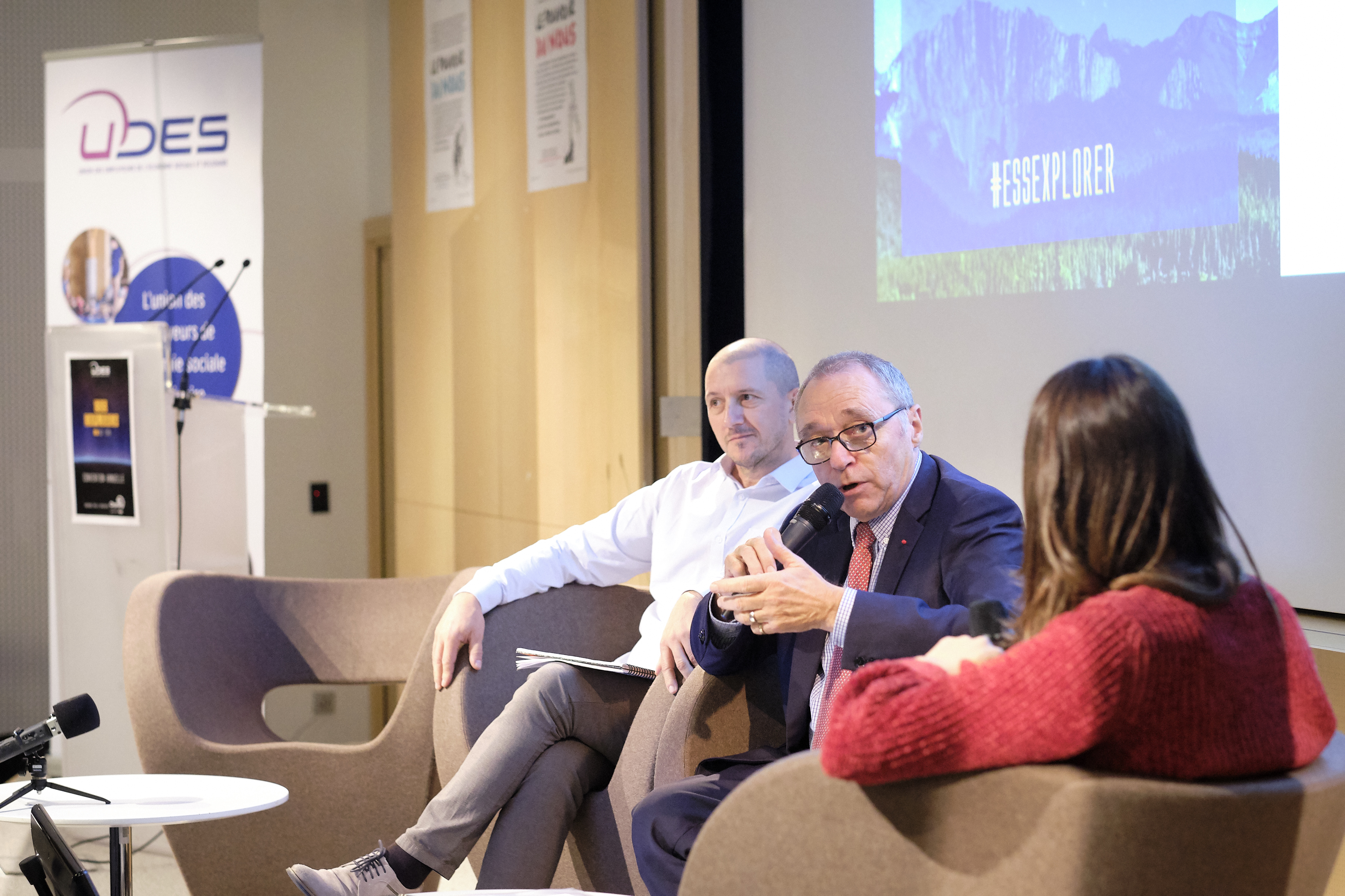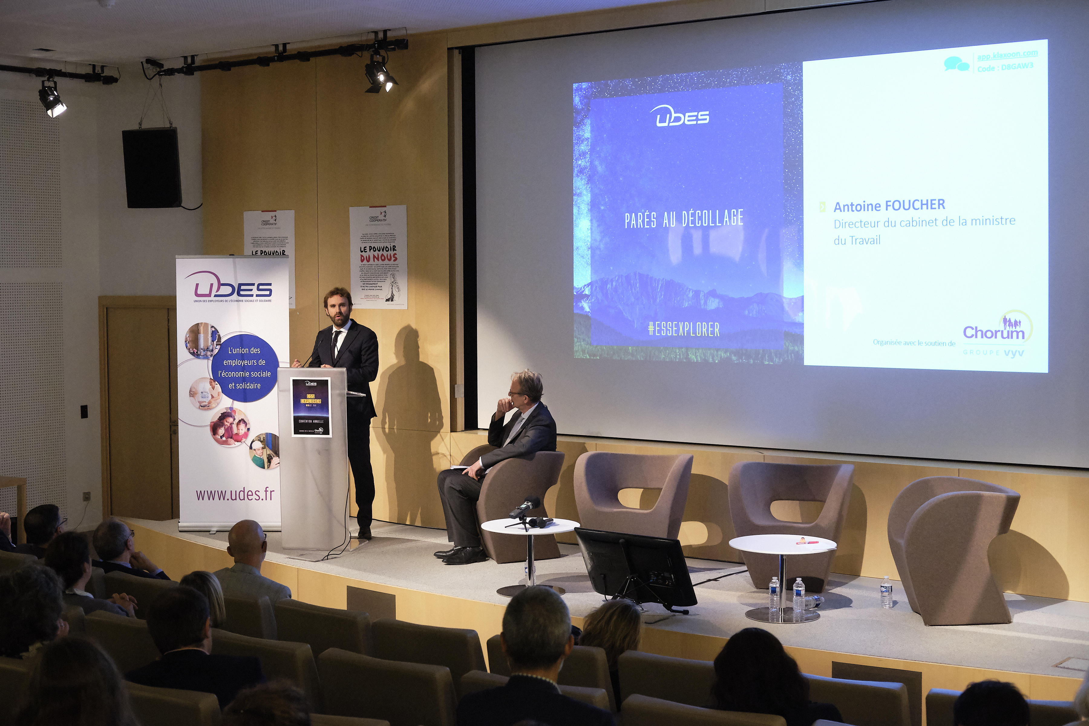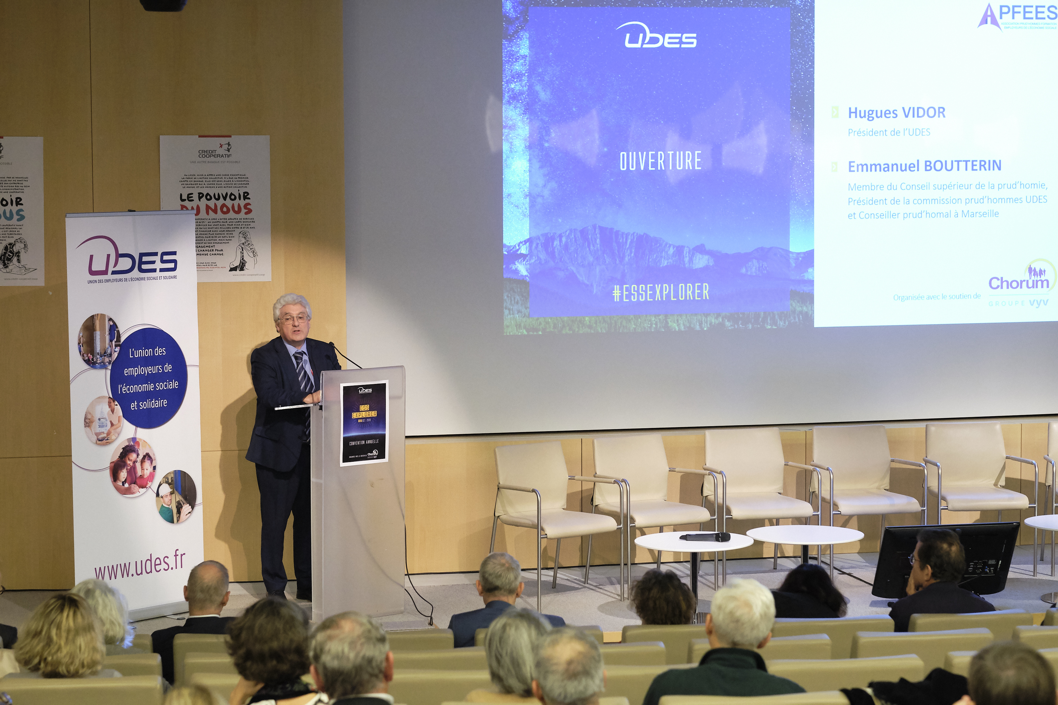 Hugues Vidor, président de l'UDES, a ouvert la manifestation. Il était suivi de Marie-Pierre LeBreton, Vice-Présidente de l'UDES, qui a présenté les faits marquants de l'année et chiffres clés de l'UDES.