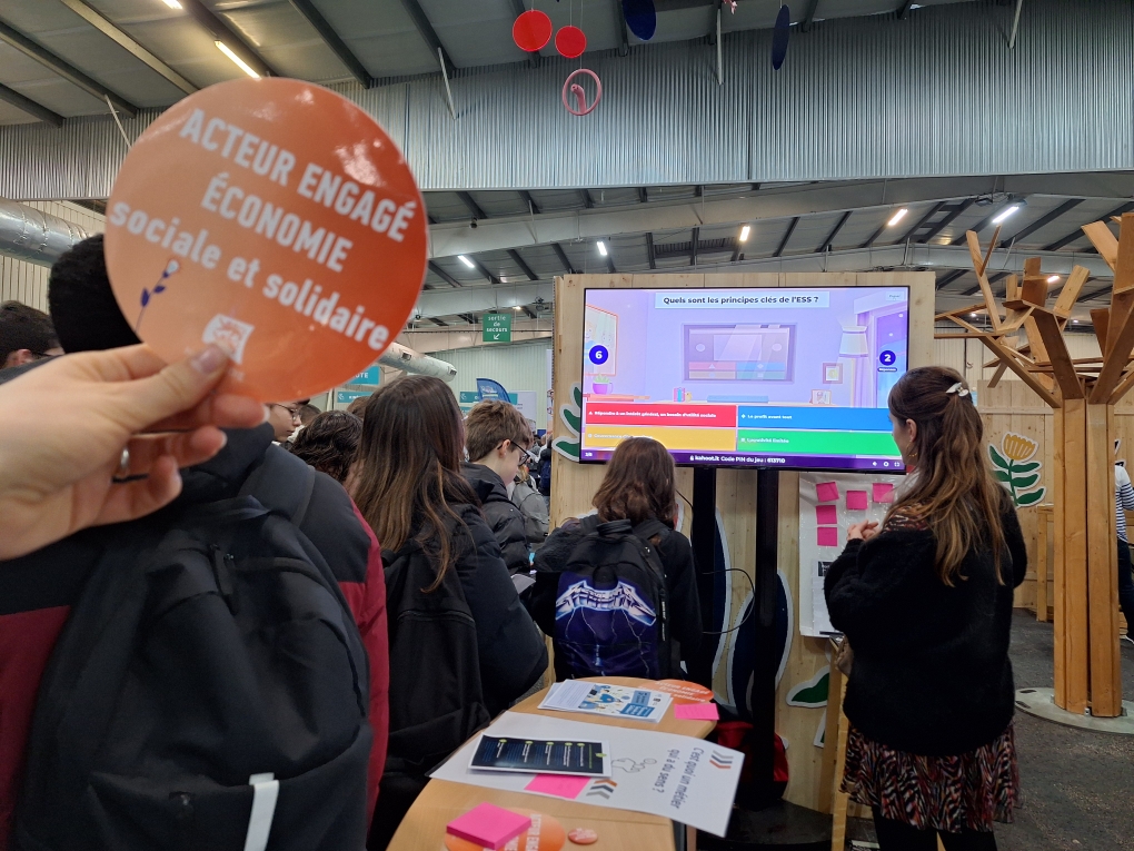 Co-organisé par l’UDES et la Cress Normandie, avec le soutien du Conseil régional et de nombreux partenaires de l’ESS (l’Ardes, l’Urhaj, Scop276, Secrateb, etc.), le stand a permis, au travers d’affichage et d’outils pédagogiques, de faire découvrir les métiers et le modèle économique de l’ESS à plus de 230 personnes lors de ce rendez-vous annuel majeur de l’orientation en Normandie. Le tout a été mis en scène à travers un quizz, des jeux et un parcours de l’ESS à la rencontre des professionnels présents en nombre sur le salon.